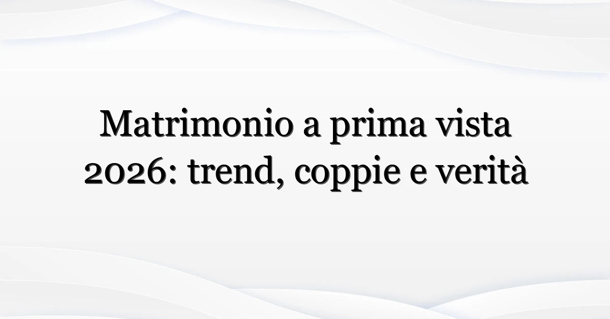 Il fenomeno “matrimonio a prima vista” è tornato al centro dell’attenzione: tra teaser, polemiche e nuove coppie, l’interesse per la versione italiana e internazionale è schizzato nelle ultime settimane. Perché ora? Perché il 2026 porta con sé una nuova edizione e cambia il contesto sociale intorno al format: più streaming, più commento social, più critiche. Se ti stai chiedendo cosa aspettarti da matrimonio a prima vista 2026 — sei nel posto giusto. Qui provo a spiegare perché questa edizione è diversa, chi cerca queste informazioni e cosa puoi fare se vuoi seguire la vicenda con occhio critico.