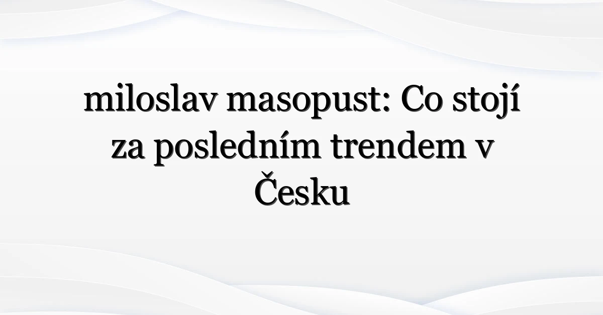 miloslav masopust je momentálně v centru pozornosti díky souhře médií a sociálních sítí. Kdo hledá, většinou chce kontext; emoční náboj pohání virální šíření. Doporučení? Ověřovat, číst z více zdrojů a zapojit se do diskuse konstruktivně. Pokud chcete sledovat dynamiku trendu, podívejte se na Google Trends a pravidelně kontrolujte renomovaná média jako Česká televize nebo Reuters.