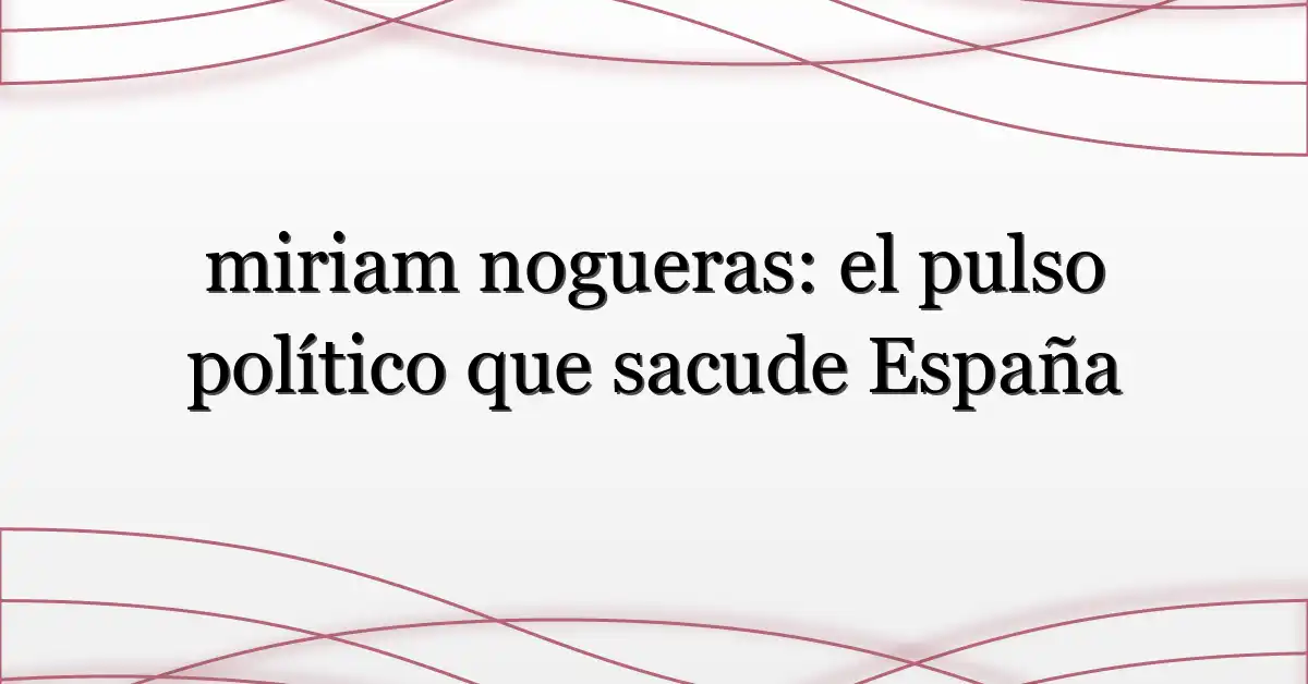 Miriam Nogueras (a menudo buscada como “miriam nogueras”) es una política catalana conocida por su papel en la política independentista y por su actividad pública y mediática. Ha ocupado cargos relevantes y ha sido una voz visible en debates sobre Cataluña y la relación con el Estado español. Para quienes siguen la política española, su relevancia no es sólo simbólica: refleja tensiones y alianzas que configuran el futuro inmediato.