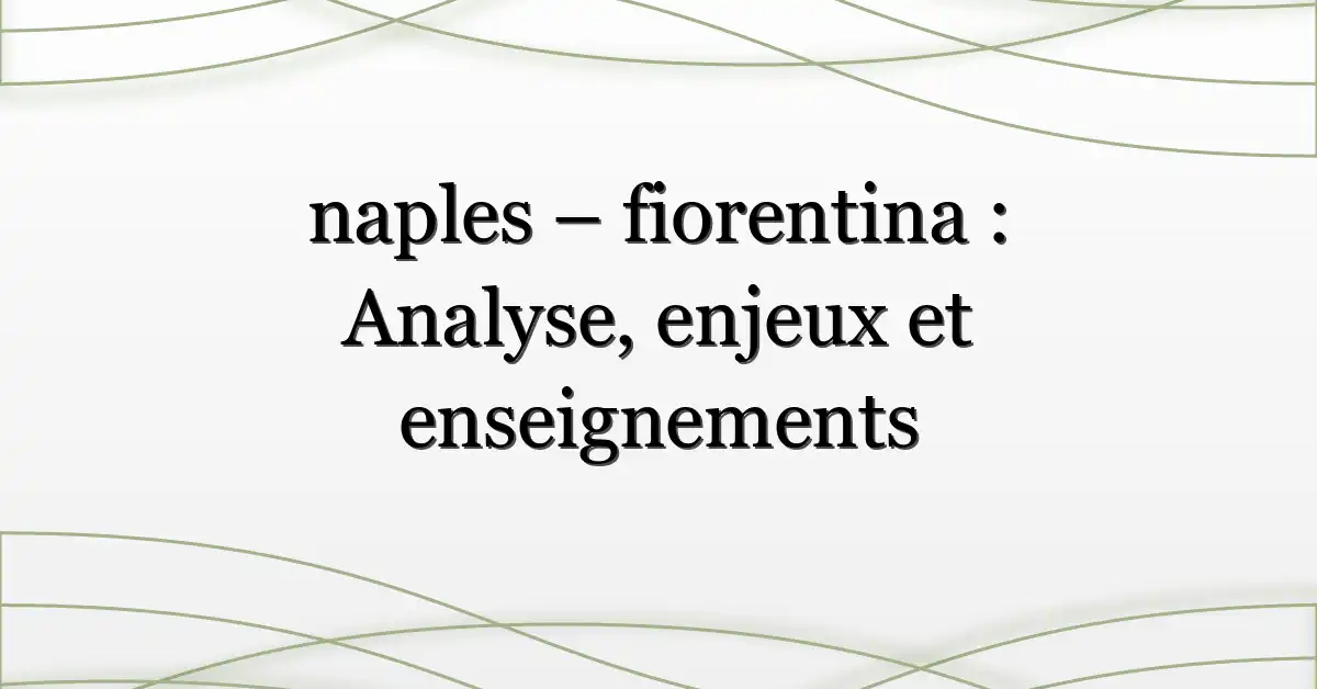 Le résultat final masque souvent les décisions structurelles qui ont dicté le match. Ce que les initiés savent, c’est que naples – fiorentina n’était pas seulement une lutte de talents, mais un test tactique pour deux staffs sous pression. Derrière le score, les micro-décisions (placements lors des coups de pied arrêtés, substitutions au 60e) ont fait basculer l’équilibre.