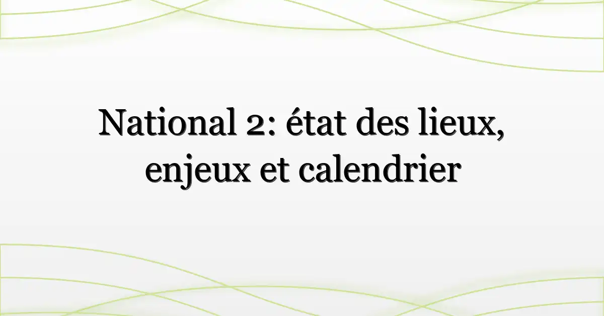 Le National 2 est la quatrième division nationale du football français, organisée en groupes régionaux en aller-retour ; les meilleures équipes visent la montée vers le National, tandis que les relégations se font vers les divisions régionales. Les calendriers et règles officielles sont publiés par la FFF.