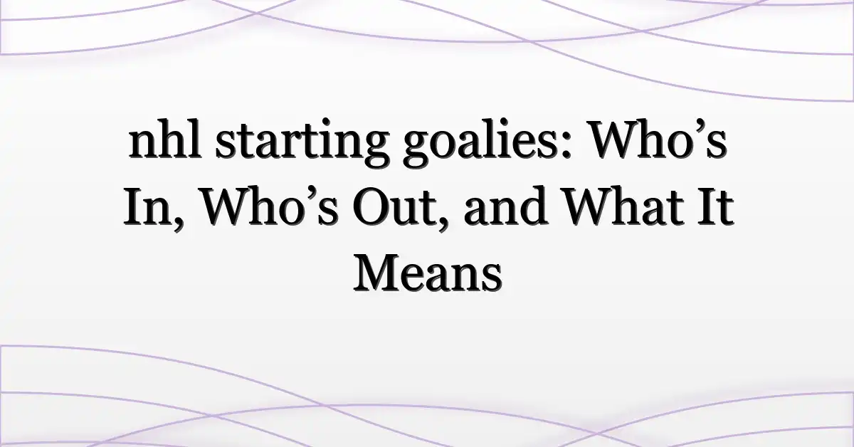 nhl starting goalies decisions matter at three levels: immediate game outcomes, fantasy decisions, and team strategy for the stretch run. Track official confirmations, read coach comments with an eye for subtext, and use recent performance—not headlines—to judge who’s actually ready. The landscape changes fast; staying ahead means checking trusted sources late and often.