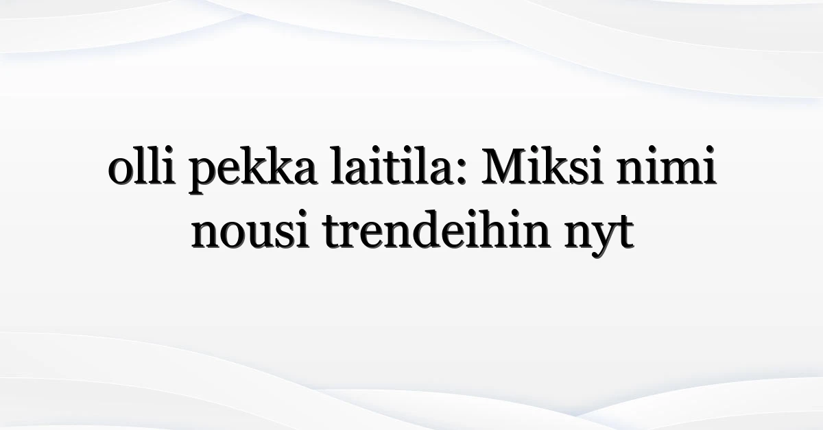 Something unexpected can make a name ripple across Finland overnight — and right now that name is olli pekka laitila. Whether you first saw it on social media, heard it mentioned on the radio, or spotted it in a news headline, the spike in searches suggests there’s a story worth following. Below I map out why the interest has surged, who’s looking, and what to watch next.
