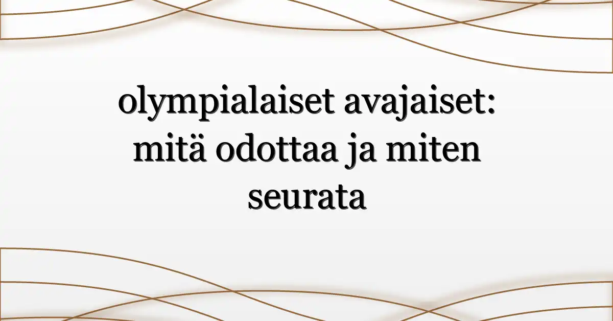 Jos haet ‘rene rinnekangas olympialaiset’ tai yleisemmin ‘olympialaiset avajaiset’, muista kaksi asiaa: 1) ensisijainen tieto tulee virallisista kanavista ja 2) sosiaalinen media täydentää televisiolähetystä reaaliaikaisilla klippeillä. Valmistaudu etukäteen, varmista lähetys ja ota ilo irti seremonian tarinankerronnasta — siitä syntyy yhteinen kokemus.
