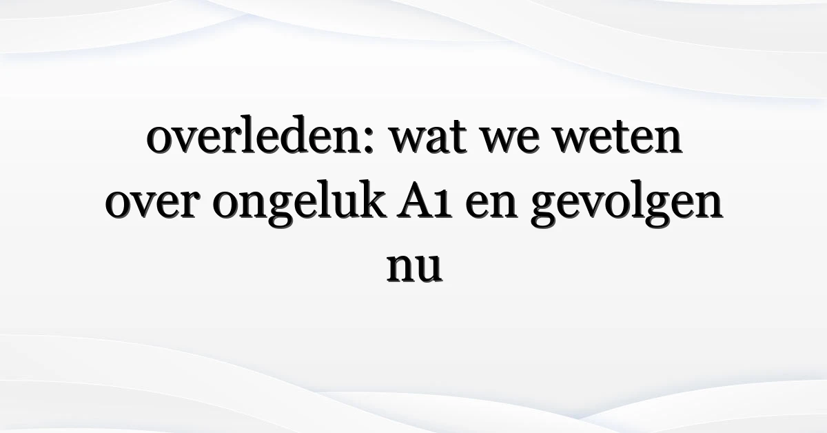 Het woord overleden duikt opeens overal op in zoekresultaten—en niet zonder reden. In de afgelopen dagen zijn meldingen van een ernstig ongeluk A1 breed gedeeld, met lokale autoriteiten en nieuwsmedia die updates geven. Voor veel lezers is de vraag meteen: wat gebeurde er, wie is betrokken en wat kun je doen als je direct of indirect geraakt bent? In mijn ervaring veroorzaakt zo’n gebeurtenis een mix van nieuwsgierigheid, angst en praktisch zoeken naar informatie. Dit artikel verzamelt feiten, context en concrete stappen voor mensen in Nederland die meer willen weten over het incident en de nasleep.