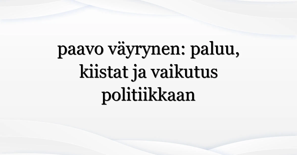 Paavo Väyrynen on yksi Suomen politiikan pitkäikäisimpiä ja kiistanalaisimpia hahmoja — ja juuri siksi hän nousee usein trendeiksi. Nyt hakukoneet täyttyvät kysymyksistä: miksi “paavo väyrynen” on jälleen esillä? Syitä on useita: uusi julkinen esiintyminen, poliittinen liike tai tuore haastattelu voivat olla laukaisijoita. Tämä artikkeli selittää, mitä tapahtui, ketkä hakevat tietoa ja mitä seurauksia tästä voi olla politiikalle Suomessa.