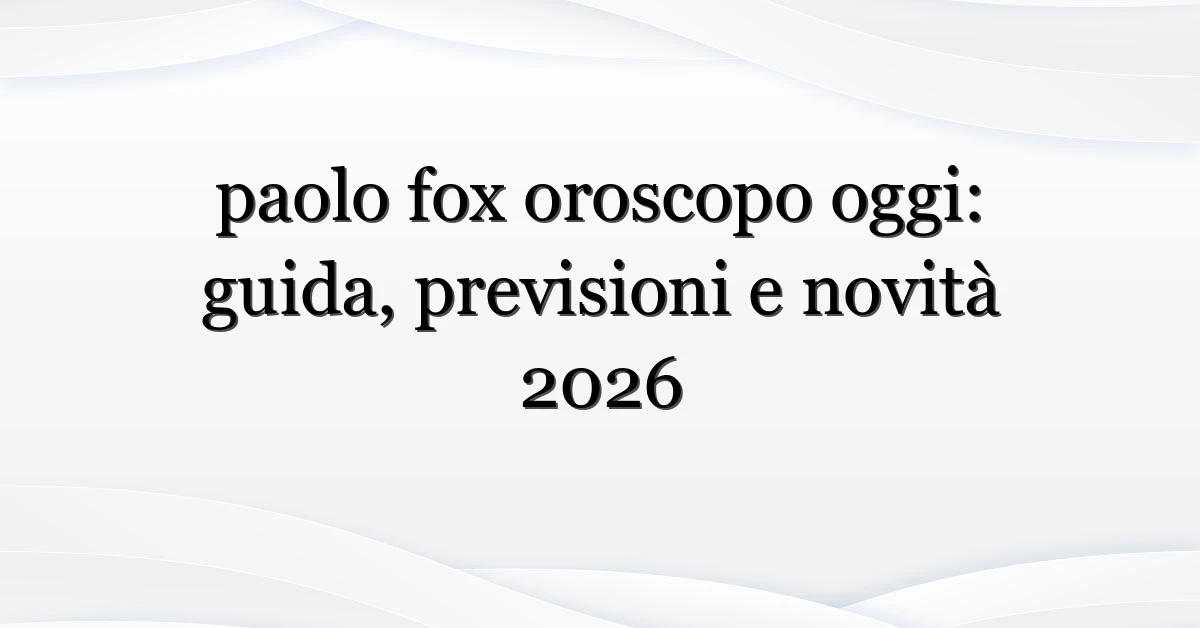 Riassumendo: l’interesse per “paolo fox oroscopo oggi” non è casuale — è guidato da eventi mediatici, stagionalità astrologica e dalla ricerca di indicazioni concrete. Prendi quello che ti serve, lascia il resto, e ricorda che le stelle suggeriscono, tu decidi.