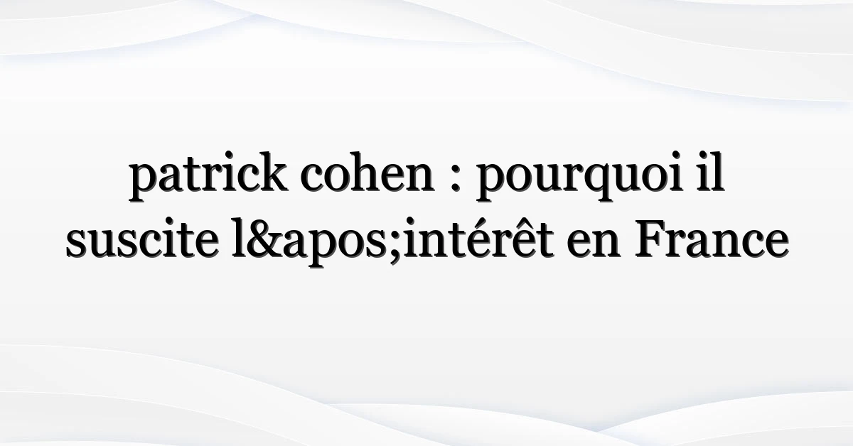 Patrick Cohen reste un nom familier pour beaucoup de Français et voilà pourquoi son nom revient dans les tendances : analyses de carrière, interviews récentes et débats autour des médias en France alimentent l’intérêt. Que vous soyez un fidèle auditeur, un lecteur occasionnel ou simplement curieux, cet article explore qui est patrick cohen, pourquoi les gens recherchent son nom maintenant et ce que cela signifie pour le débat public.