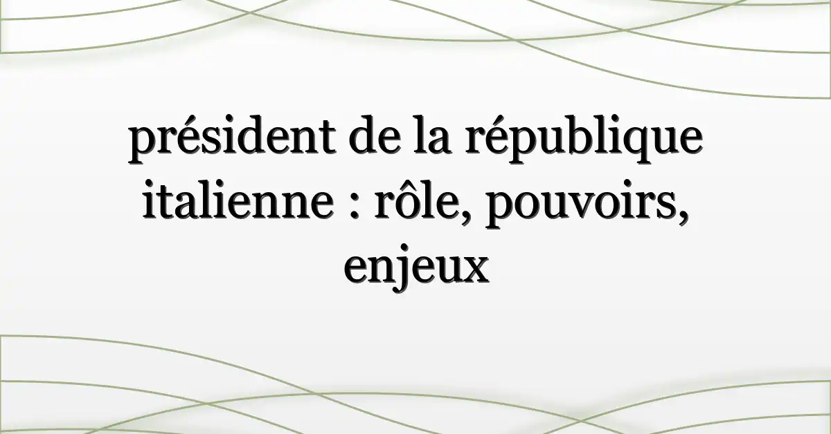 Le président de la république italienne est le chef de l’État en Italie : il incarne l’unité nationale, garantit le respect de la Constitution et nomme le président du Conseil des ministres sur la base des majorités parlementaires. Contrairement aux présidences très exécutives, son rôle combine fonctions représentatives, pouvoirs constitutionnels clés et rôle d’arbitre en période de crise.