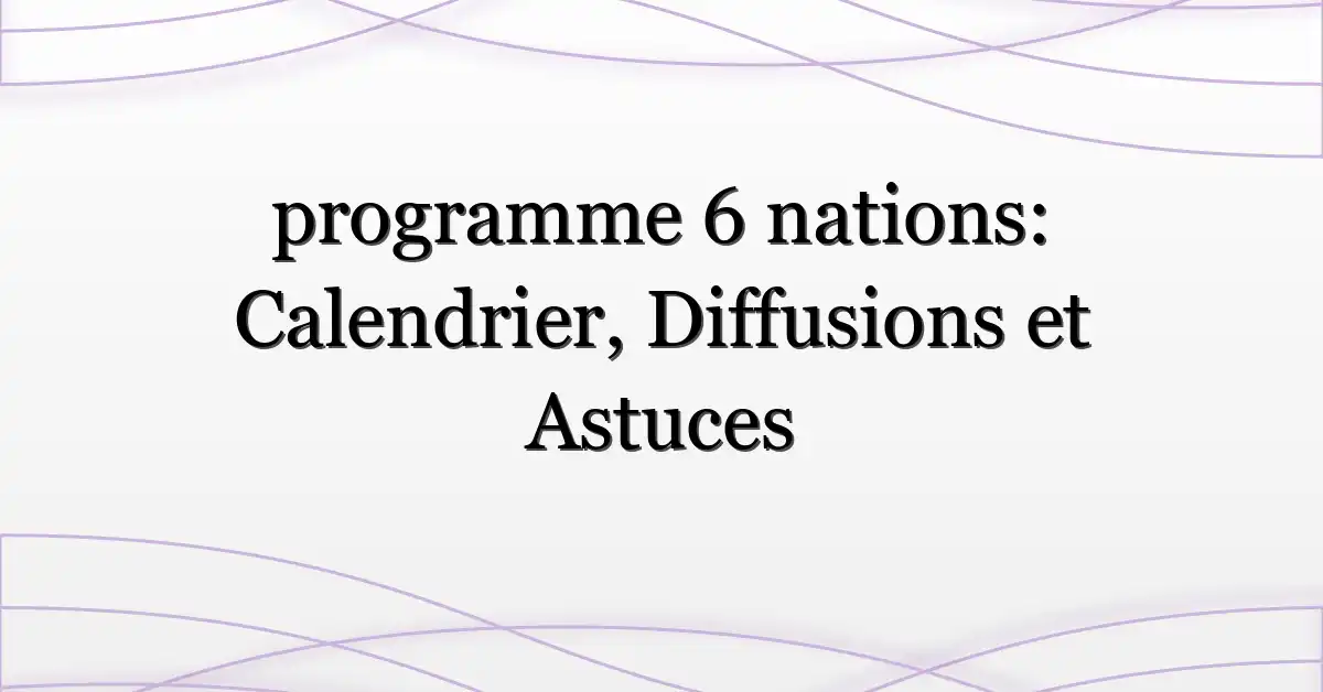 Le tournoi des Six Nations réunit six équipes nationales européennes et s’étale sur plusieurs week-ends. Le programme 6 nations détaille les journées de compétition, les stades et les horaires. Chaque équipe joue cinq rencontres en phase régulière (une contre chacune des autres nations) et le calendrier alterne week-ends pour permettre aux joueurs de récupérer.