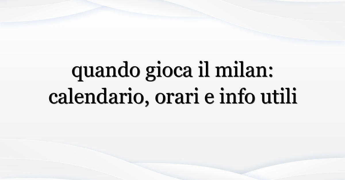 Vuoi sapere quando gioca il Milan questa settimana? Non sei il solo: ogni volta che esce il calendario o si avvicina una sfida importante, le ricerche di “quando gioca il milan” esplodono. Qui trovi tutto quello che serve per non perdere una singola partita — date, orari, dove vederla in TV o in streaming, consigli pratici per chi va allo stadio e come gestire spostamenti e biglietti. Ho seguito il club per anni: quello che segue è un mix di dati ufficiali, esperienza pratica e suggerimenti immediati per tifosi in Italia.