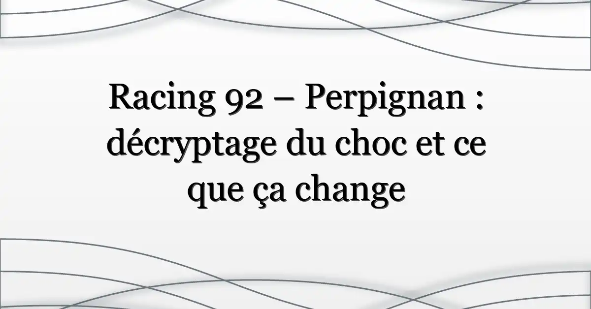 Le buzz autour de Racing 92 – Perpignan (et les recherches «usap racing») reflète la passion du public pour le Top 14. Au-delà de l’anecdote, ces matches offrent des enseignements tactiques et des signaux sur la santé des projets sportifs. Suivre les sources officielles et les analyses permet de transformer l’émotion d’après‑match en compréhension durable.