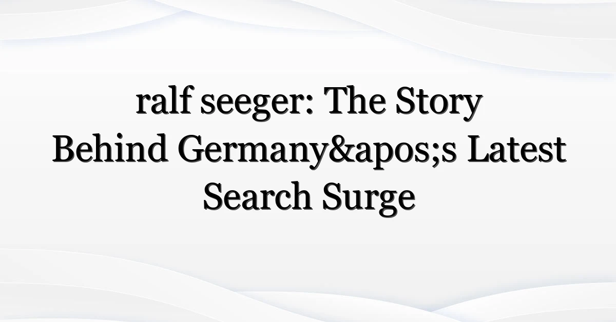 Something—or someone—has captured attention, and the name ralf seeger now sits high on German search lists. The spike didn’t happen in a vacuum: a mix of social posts, a regional broadcast and online conversations created a feedback loop that sent interest soaring. Now readers want more: who is ralf seeger, why is he trending, and what should we make of the chatter? This piece unpacks that surge, who’s looking, and what it might mean for media and public perception in Germany.
