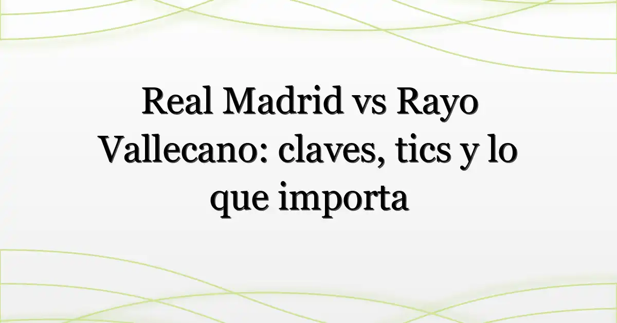 ¿Por qué te importa este partido más que otro en la jornada? Porque cuando el Real Madrid se mide con Rayo Vallecano aparecen tensiones tácticas, cambios de carrera y decisiones del entrenador que alteran la tabla y la sensación de la afición. Si buscas «real madrid hoy», este texto te deja preparado: titulares probables, dinámicas clave y qué mirar minuto a minuto.
