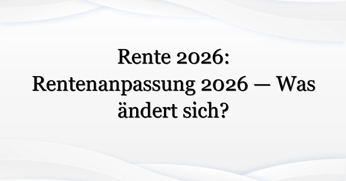 Die Rentenanpassung 2026 beeinflusst die Höhe Ihrer gesetzlichen Rente je nach Lohnentwicklung und Beitragszeiten. Prüfen Sie Ihren Rentenbescheid und rechnen Sie mit Szenarien (0–5% je nach Annahmen).