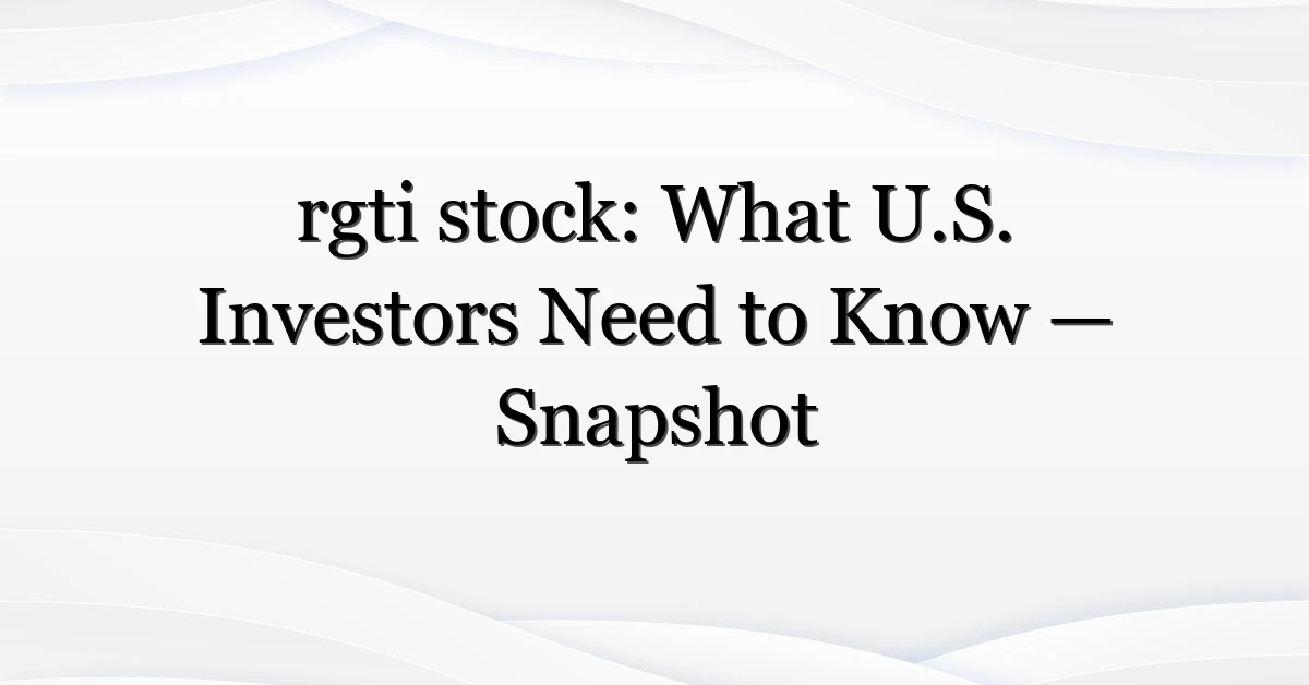 If you clicked because you saw a spike in “rgti stock” on a watchlist or social feed, you’re not alone. Interest in the ticker jumped after a flurry of headlines, analyst notes, and price swings this week (and that kind of buzz makes even cautious investors look twice). I’ll walk through what’s likely driving the attention, who is searching, and practical next steps you can take if you own or are thinking about buying rgti stock.