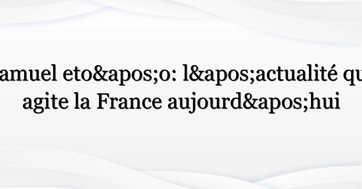 samuel eto’o est de nouveau sur toutes les lèvres en France — et pas seulement chez les fans de foot. Que ce soit une prise de parole publique, une apparition médiatique ou une implication dans une initiative locale, l’ancien buteur star suscite curiosité et débats. Maintenant, voici où ça devient intéressant: pourquoi ce regain d’attention, qui le recherche et que faut-il retenir pour les semaines à venir?
