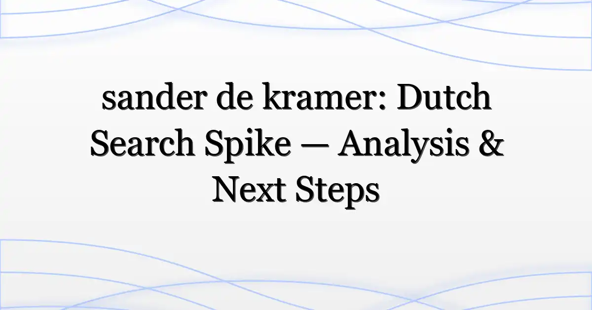 Trends like the one for “sander de kramer” are useful reminders: attention moves faster than facts. If you follow the verification steps above, you’ll be ahead of most readers — and less likely to amplify errors.