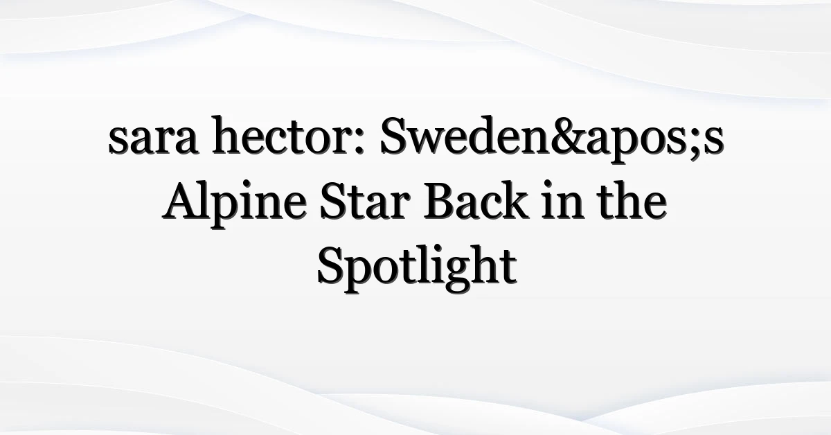 Sara hector’s current spike in interest isn’t accidental. It’s the result of performance, storytelling and timing. Whether you’re a dedicated fan tracking every split or a casual reader curious about Sweden’s sporting moments, this is a good time to follow her season closely—because momentum breeds headlines, and headlines bring more people into the stands and online conversations.