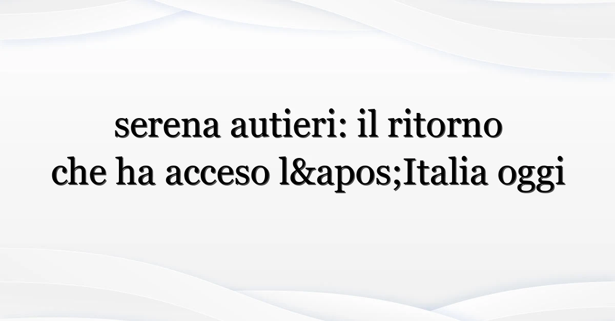 Se ti sei chiesto perché serena autieri è salita nelle tendenze italiane, non sei il solo. Negli ultimi giorni c’è stata una risalita di interesse intorno al suo nome: commenti sui social, estratti di interviste che circolano, e segnalazioni di nuovi progetti (o di ospitate televisive) che hanno spinto gli utenti a cercare di più. Ora, ecco dove diventa interessante: cosa sta guidando questa ondata di attenzione e cosa significa per la sua carriera?