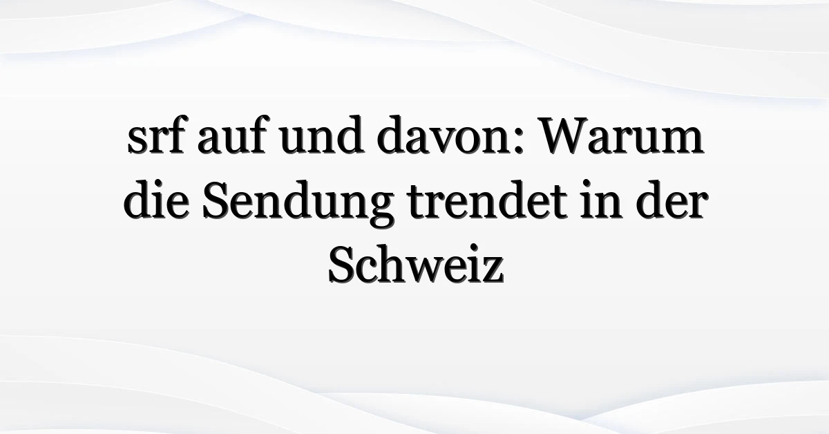 Seit Kurzem taucht “srf auf und davon” wieder in Feeds und Sucheingaben auf — aus gutem Grund. Die Sendung, die Kurzporträts von Menschen und Orten in der Schweiz zeigt, hat kürzlich mehrere Folgen veröffentlicht, die online viral gingen und Diskussionen über Authentizität, Produktionsästhetik und regionale Sichtbarkeit auslösten. Wer steckt hinter diesem neuen Popularitäts-Schub? Und was bedeutet das für Zuschauerinnen und Zuschauer hierzulande? In diesem Text gehe ich den Auslösern nach, wer sucht, was die Sendung bietet und welche praktischen Schlüsse man jetzt ziehen kann.