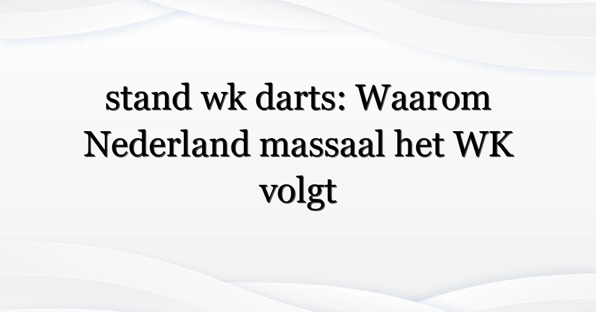 Samengevat: “stand wk darts” is meer dan cijfers. Het is een mix van live-scores, nationale trots en sociale momenten. Als je één ding onthoudt: kies je bronnen slim en bereid je voor op piekmomenten — dan mis je niets van de actie.