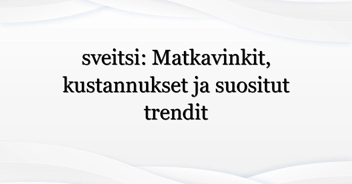 - Sisällytä sveitsi-suunnitelma budjettiin realistisesti — se on kalliimpi kuin Suomen keskitaso.