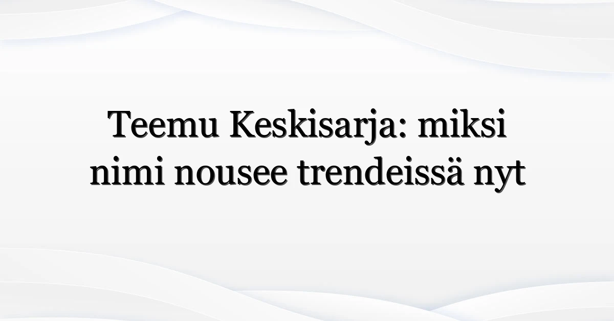 Olet ehkä huomannut hakumassan kasvun: teemu keskisarja näkyy nyt hakutuloksissa ja sosiaalisessa mediassa enemmän kuin aiemmin. Mitä oikeastaan tapahtui, ja miksi juuri nyt? Tässä artikkelissa käyn läpi, miksi nimi nousi esiin, ketkä etsivät tietoa (ja miksi), sekä miten seurata ja ymmärtää tällaista trendausta Suomessa.