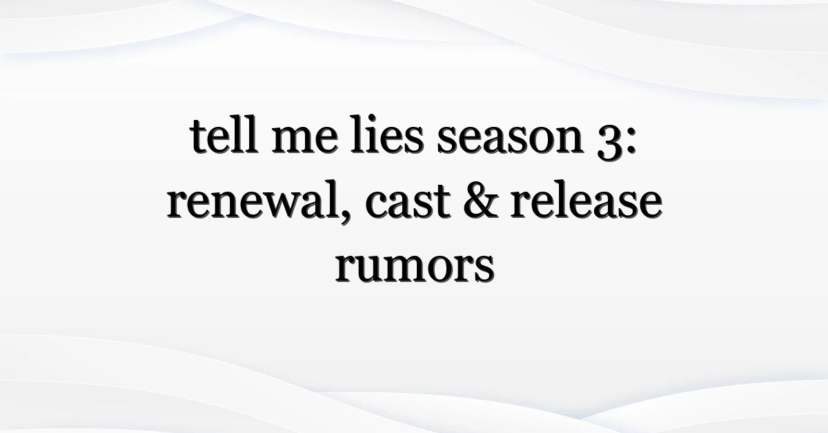 Fans asking about tell me lies season 3 are driving the trend, but social buzz alone doesn’t equal a renewal. Watch for official streamer announcements, industry trade confirmation, and cast scheduling updates. Meanwhile, take practical steps: follow official channels, archive existing seasons, and make informed noise if you want to influence the conversation.
