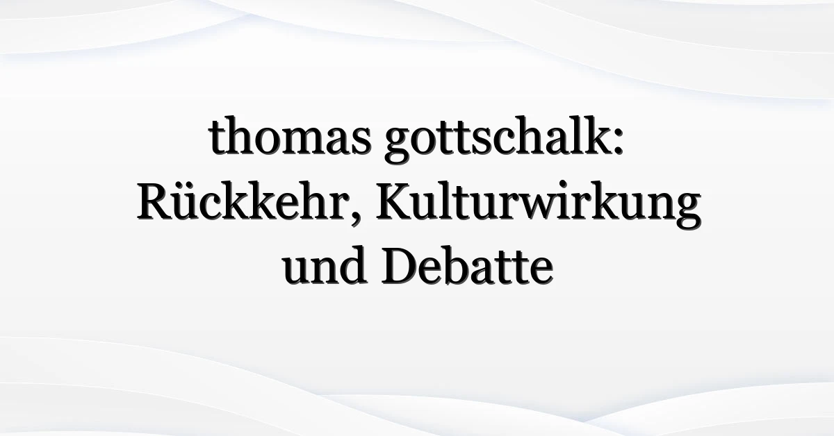 Jetzt passiert etwas, das Fans und Kritiker gleichermaßen aufhorchen lässt: thomas gottschalk ist wieder ein Thema in deutschen Medien. Ob wegen einer TV-Retrospektive, eines Interviews oder einfach alter Clips, die neue Aufmerksamkeit beleuchtet nicht nur ihn persönlich, sondern auch, wie wir Fernsehgeschichte in Deutschland erinnern und diskutieren.