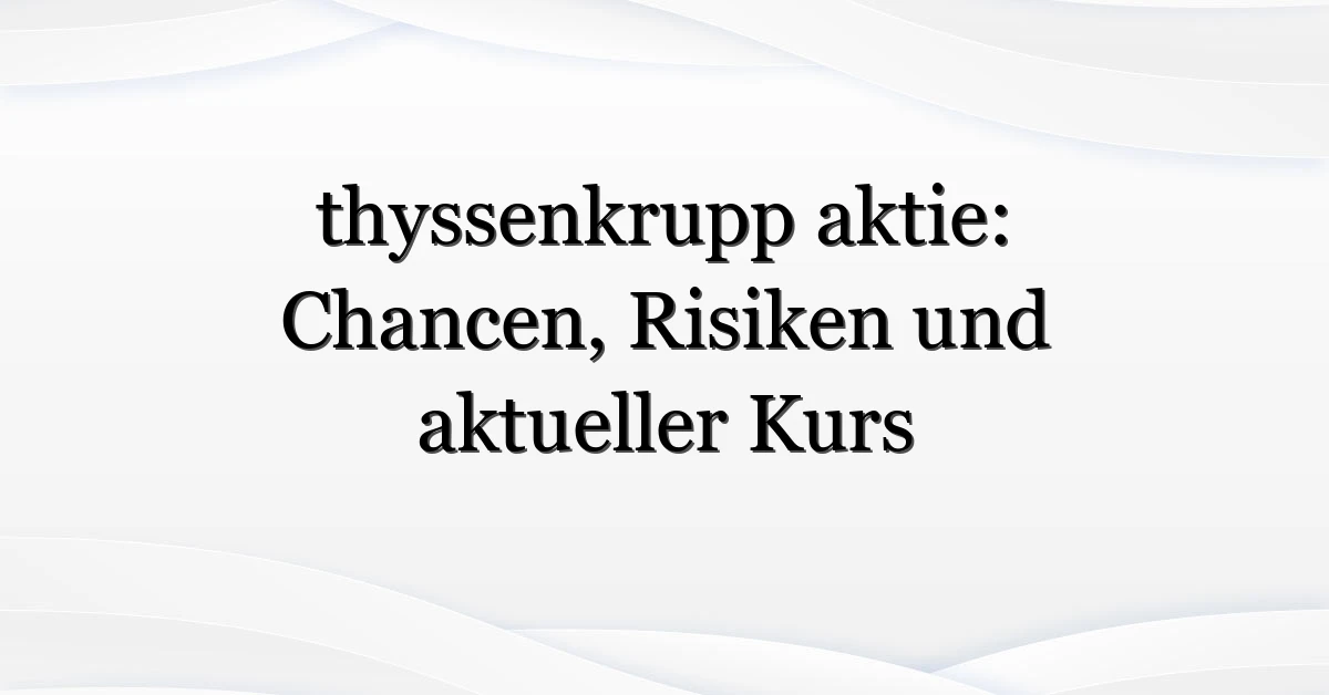 Die thyssenkrupp aktie steht wieder im Rampenlicht: Anleger in Deutschland fragen sich, ob der Kurs die jüngsten News richtig einpreist und ob jetzt ein Einstieg Sinn macht. In meinen Recherchen fällt auf, dass nicht nur Finanzkennzahlen, sondern auch Restrukturierungspläne und Auftragseingänge den Markt antreiben. Das sorgt für Volatilität — und für Schlagzeilen. Wer die Aktie beobachtet, will wissen: Was hat sich geändert? Welche Risiken bleiben? Und wie reagieren Strategen und Privatanleger? In diesem Beitrag bespreche ich, warum die thyssenkrupp aktie aktuell so viel Aufmerksamkeit bekommt und welche praktischen Schritte Leser jetzt erwägen könnten.