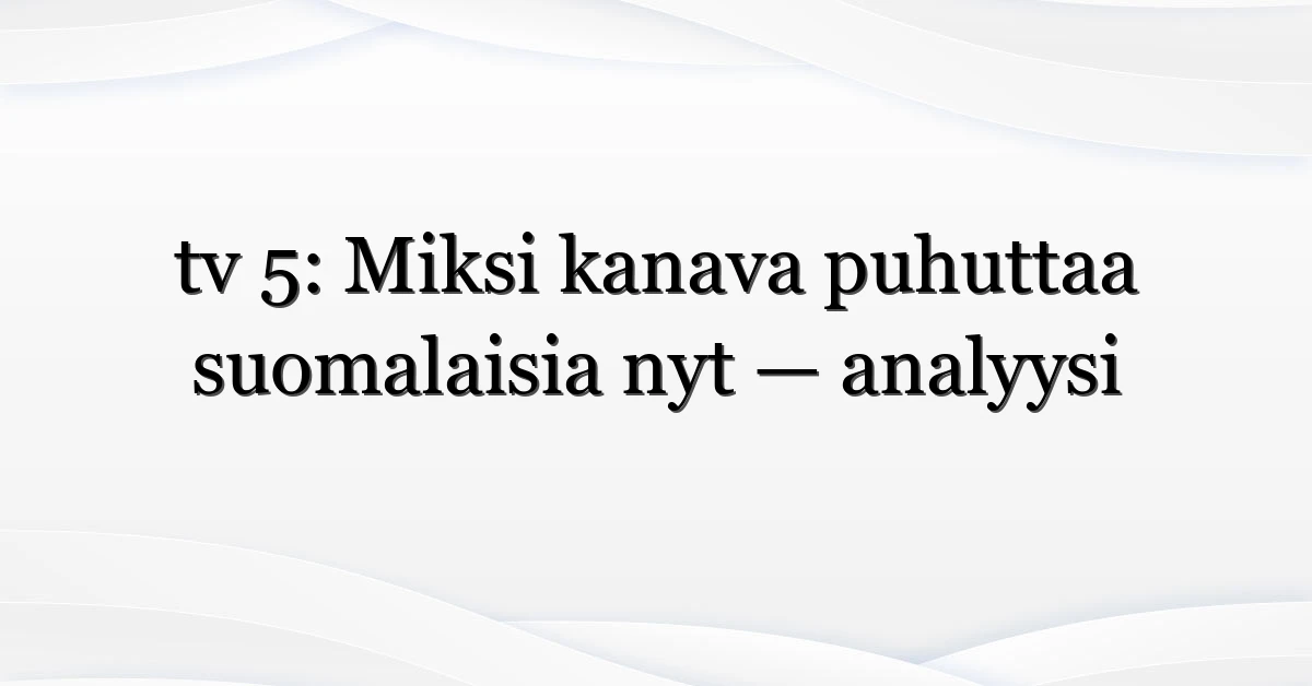 TV 5 on ollut puheenaiheena Suomessa viime viikkoina. Pelkkä nimi “tv 5” tuo esiin kanavan perinteisen televisioidentiteetin, mutta juuri nyt keskustelu polttaa sädekehän ympärillä: ohjelmistouudistukset, HBO-sisältöjen näkyvyys ja etenkin suomi ruotsi u20 jääkiekko -otteluiden lähetykset ovat nostaneet kanavan hakukoneissa ja sosiaalisessa mediassa.