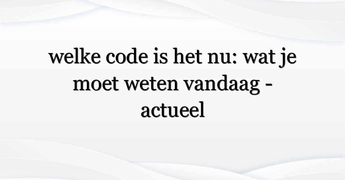 Dus, “welke code is het nu” is meer dan een vraag—het is een reflectie van onze behoefte aan snelle, betrouwbare informatie. Houd officiële bronnen bij de hand en handel naar de geldende code; dat voorkomt verwarring en helpt je gerichter te reageren.