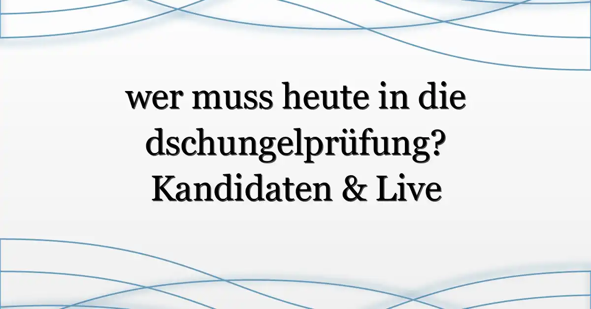 Wer muss heute in die dschungelprüfung? Diese Frage treibt Fans der Show am Abend besonders um: Live-Votings, überraschende Nominierungen und nervenaufreibende Prüfungen sorgen für reichlich Social-Media-Traffic. Ob es um einen prominenten Favoriten geht oder um einen Newcomer, der plötzlich in die Prüfung muss — die Entscheidung fällt oft erst kurz vor Sendebeginn. In diesem Beitrag beleuchte ich, warum gerade heute so viele Leute suchen, wer muss heute in die dschungelprüfung, wie die Auswahl abläuft und welche Kandidaten aktuell am wahrscheinlichsten betroffen sind.