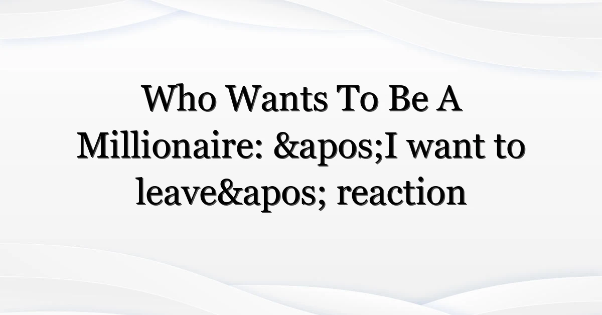 Lead: On a recent edition of the UK quiz show Who Wants To Be A Millionaire?, a contestant’s candid outburst — “I want to leave” — after a particularly tricky question jolted viewers and reignited debates about pressure on game-show contestants, production responsibility and live television moments that go viral. The clip has been shared widely, prompting commentary from fans, media and TV psychologists about what happened and why it landed so powerfully in the public consciousness.