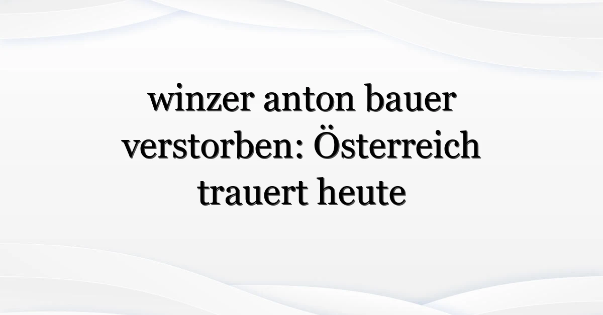 Berichten zufolge ist der bekannte österreichische Winzer, unter dem Namen winzer anton bauer verstorben, Thema in Regional- und Branchenmedien — und das aus gutem Grund: Viele in der Weinbranche und der lokalen Gemeinde fragen jetzt, was das für das Weingut, die Familie und die regionale Weinproduktion bedeutet.