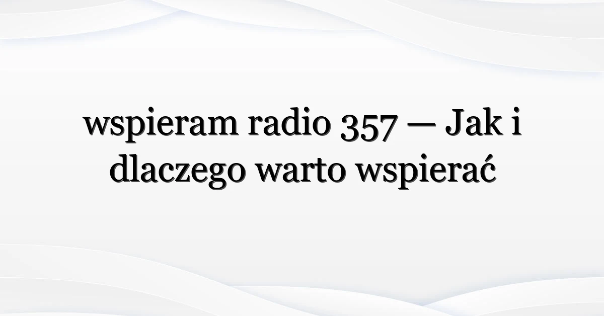 Gdy wpiszesz “wspieram radio 357” w wyszukiwarkę, trafiasz na falę postów, wpisów i apeli. To nie przypadek — to efekt dużej kampanii wspierającej niezależne radio, które budzi sympatię słuchaczy w całej Polsce. Co stoi za tym trendem, kto najczęściej wyszukuje ten zwrot i — co najważniejsze — jak praktycznie dołączyć do akcji? W tym tekście wyjaśniam, dlaczego “wspieram radio 357” stało się hasłem, które łączy społeczność i jak możesz pomóc krok po kroku.