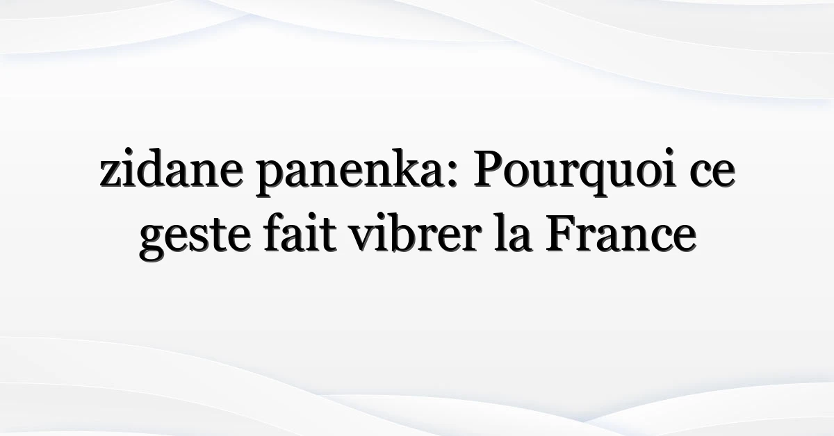 La Panenka est une manière de tirer un penalty où le tireur feint la puissance puis glisse le ballon au centre, lobant le gardien qui plonge. L’inventeur officiel est Zdeněk Panenka, mais l’image romantique du geste en France se teinte souvent du nom de Zinedine Zidane, surtout parce que Zidane a incarné à la fois élégance et audace dans les moments-clés.